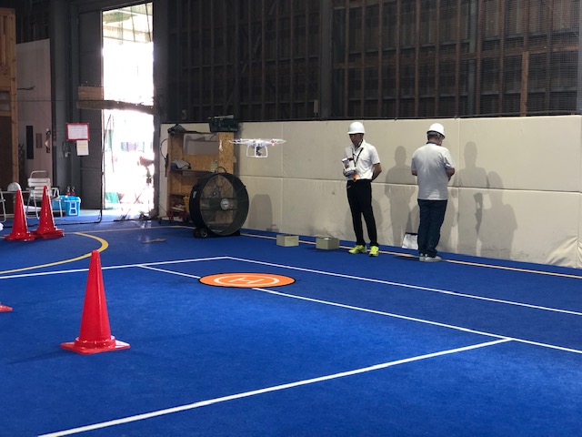 22期ドローンスクール3日目 2022年7月4日 3日目、午前中は屋外実習を行いました。 屋外実習は中瀬ソフトボール場という場所で行います。 広くて飛ばしやすいです。 Phantom以外の機体、InspireとMavicも飛ばしていただきました。 ちょっとわかりにくいですが奥に写っているのがInspireです。 午後は屋内で夜間・目視外飛行の練習と最終日に行う試験対策です。 写真は目視外飛行の練習を行っているところです。 暑い中でのヘルメット…なかなか大変です💦 最終日は試験です。
