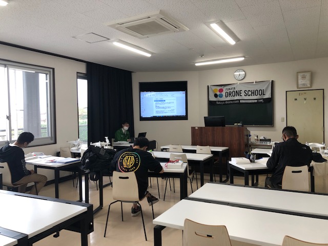 24期ドローンスクール始まりました! 2022年10月22日 本日よりドローンスクール24期、開始です! 今期は3名のお客様にお越しいただきました。 初日は座学なので、1日教室で勉強です。 6コマの座学のあとは、小型のドローンTelloを使って室内実習です。 皆さん上手に操作していて座学より楽しそうでした🎵 明日からの実技もこの調子で頑張りましょう!!