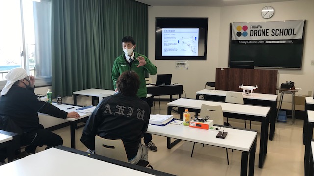 ドローンスクール始まる。 2020年12月7日 今年最後のドローンスクールが始まりました。 今年はコロナの影響もあり実に大変な年でした。来年はコロナがおさまって良い年になることを期待しましょう! ところで今回のスクールはも寒い中でのスクールになると思います。風邪に注意を払いながら無事に終わることを願います。 今日は、座学になります。受講生は二人ですが、二人共熱心に講義を受けています。明日からは実技になりますが、寒さに負けないで頑張って欲しいと思います。 後日公開のブログも期待して待っていて下さい。